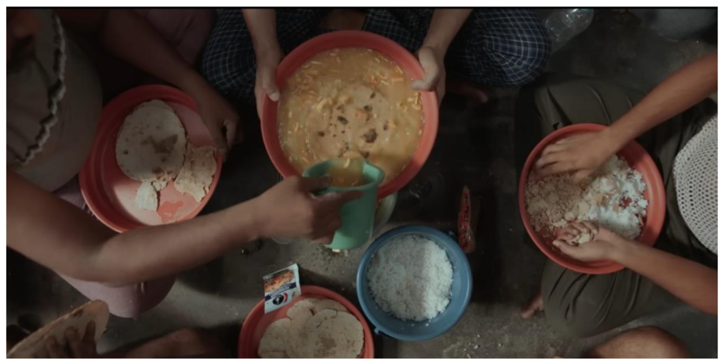 11:00 AM- Lunch (Rice with black bugs, watery dal, rotten veggies, 2 rotis of very low-grade wheat flour called “chokar”)