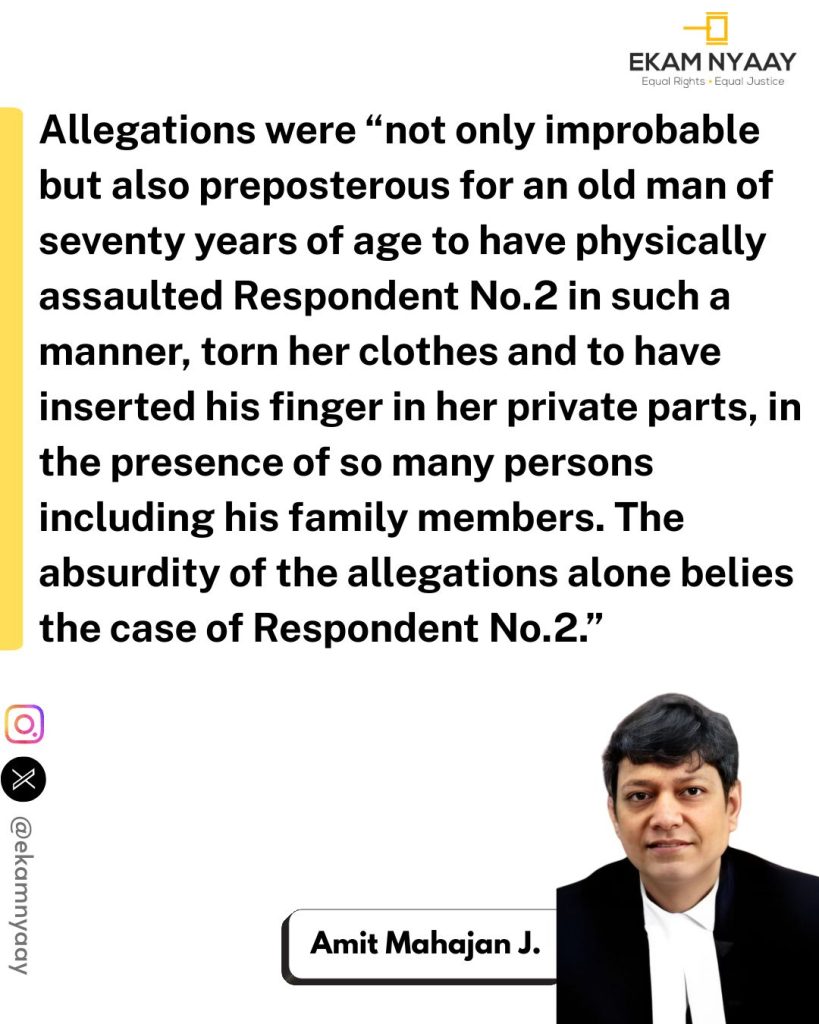 The petitioner argued that the allegations were false and inherently improbable, emphasising his age (about 72), his long and distinguished military service, and prior disputes with the complainant over the park. He highlighted that the complainant had a history of making similar allegations against her aged father, disabled brother, and neighbours. Statements of 15 witnesses and video footage showed no assault or injury, and the Magistrate had failed to consider the detailed police enquiry which exonerated the petitioner.