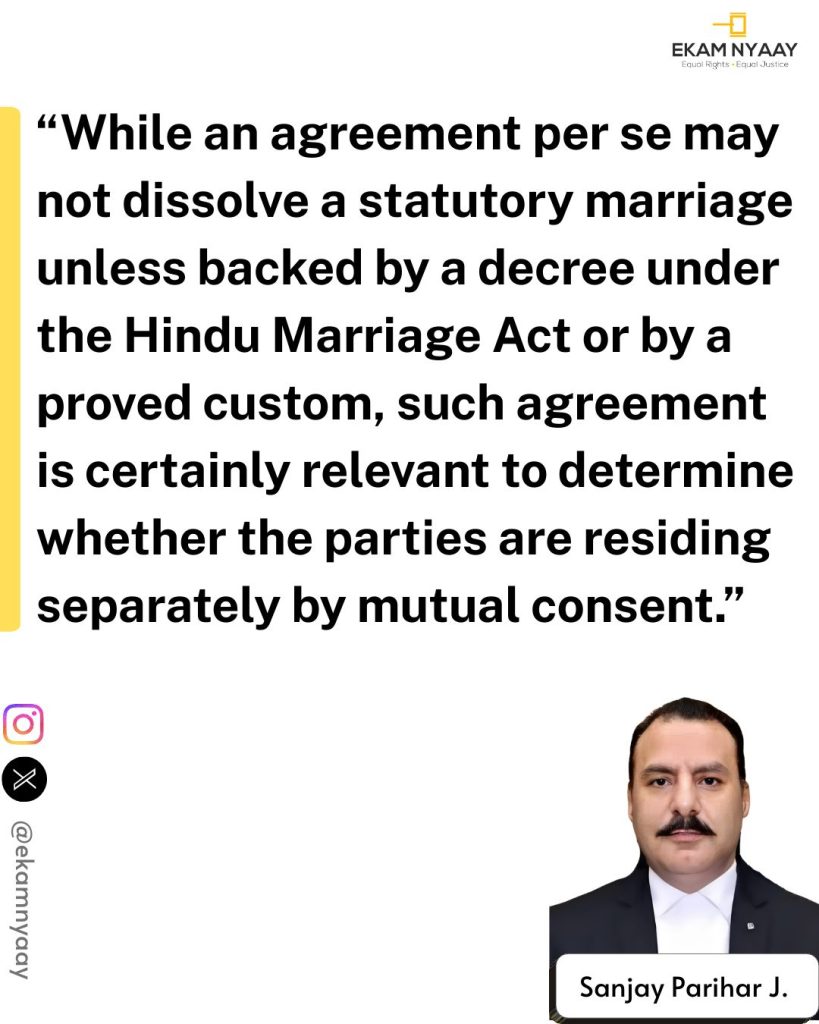 Subsequently, wife filed proceedings only for maintenance of the minor child and described herself as divorced in those proceedings. Years later, in 2008, she filed a fresh petition seeking maintenance for herself. The CJM eventually allowed the petition and granted maintenance. However, Revisional Court reversed the order, holding that the parties had been living separately by mutual consent since 1995 settlement.