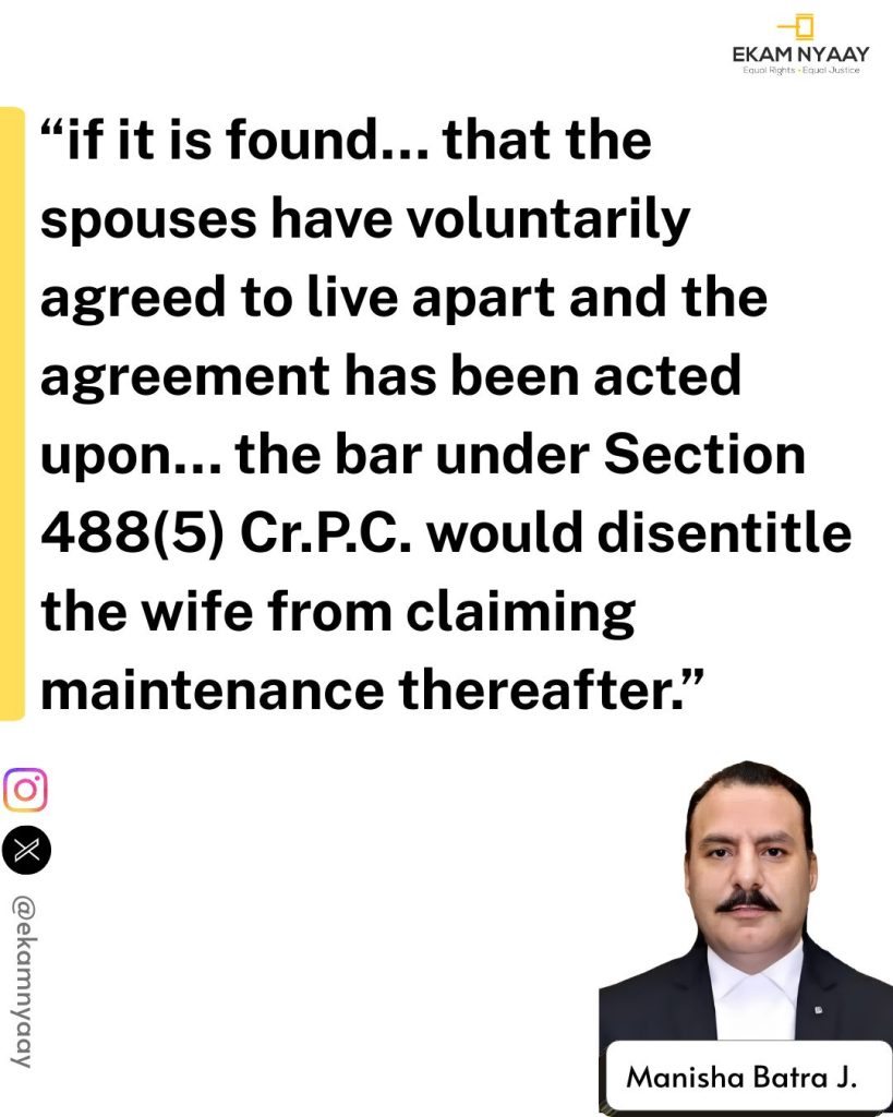 In Sarita Devi v. Mohan Singh, J&K and Ladakh High Court observed that a wife who had earlier entered into a private settlement and lived separately from her husband for decades could not later claim maintenance u/s 125 Cr.P.C.