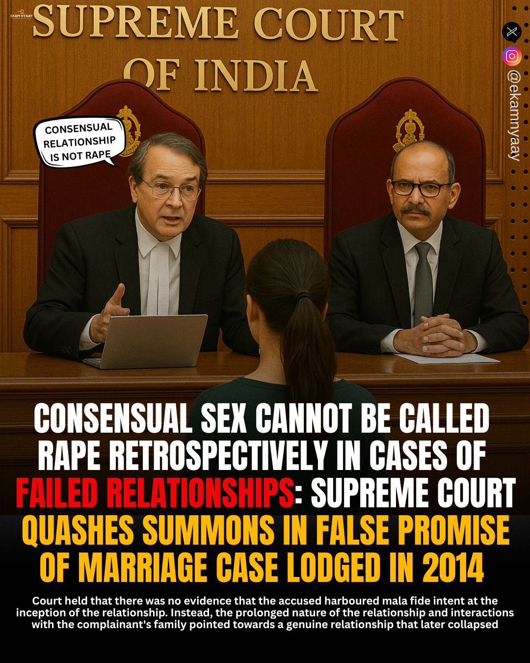 SC – Consensual Sex Cannot be called Rape Retrospectively in cases of Failed Relatiosnships