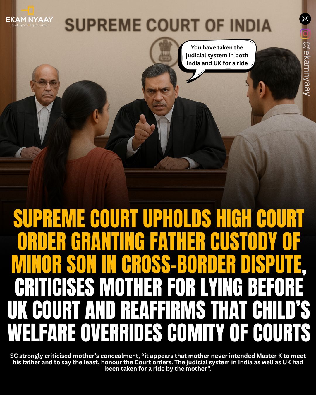 The appellant (husband), an Australian citizen of Indian origin, married the respondent (wife), an Austrian citizen, in 2010. Their daughter was born in 2012. In June 2013, the respondent left the matrimonial home in Australia with the child and moved to Austria. Thereafter, multiple proceedings were initiated under The Hague Convention, 1980, and foreign courts, including those in Austria, directed the respondent to return the child to Australia, but she defied those orders.