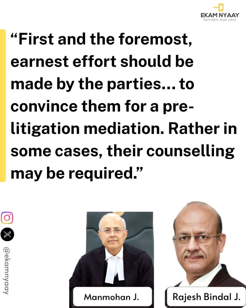 Court further noted that even when cases like maintenance or domestic violence applications are filed, courts should first explore mediation instead of encouraging allegations and counter-allegations.