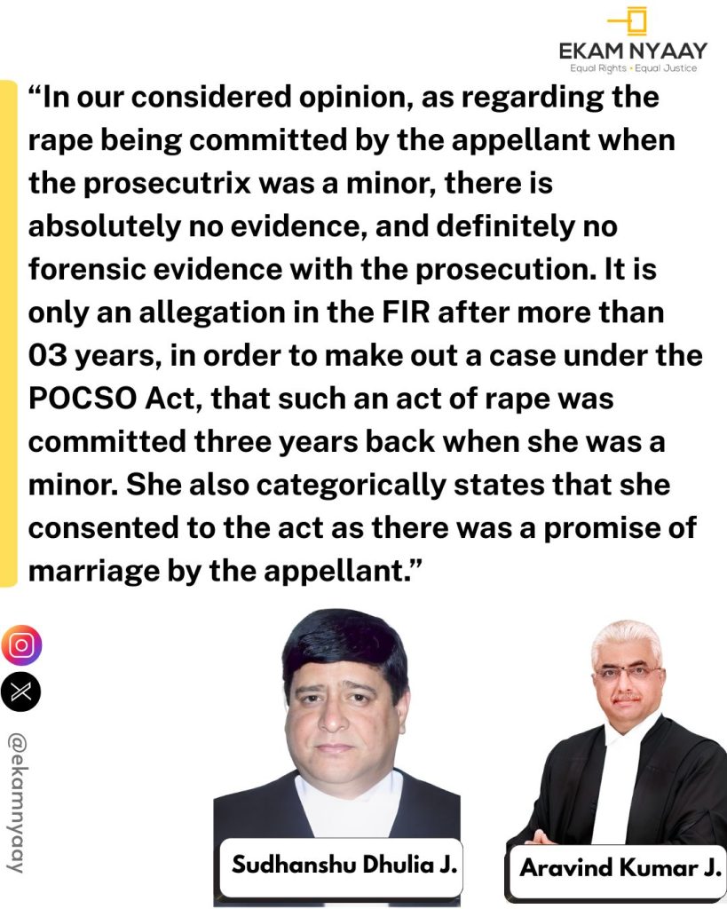 Supreme Court Quashes Rape & POCSO Case Filed by Adult Woman Alleging False Promise of Marriage When She Was Minor. Says POCSO Case Can Also be Quashed If No Supporting Evidence.
