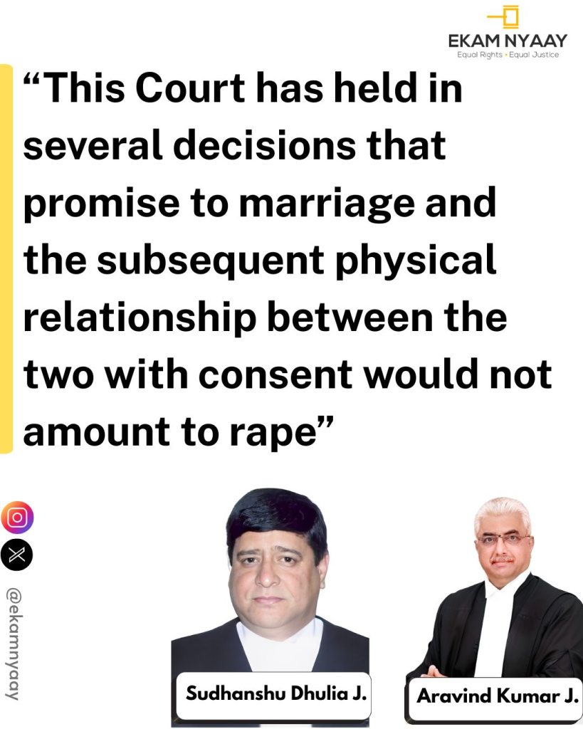 Court also relied on Prithivirajan v. State, Pramod Suryabhan Pawar v. State of Maharashtra, and Maheshwar Tigga v. State of Jharkhand and clarified that a consensual relationship based on a promise to marry does not amount to rape unless it is shown that the promise was false from the very outset.